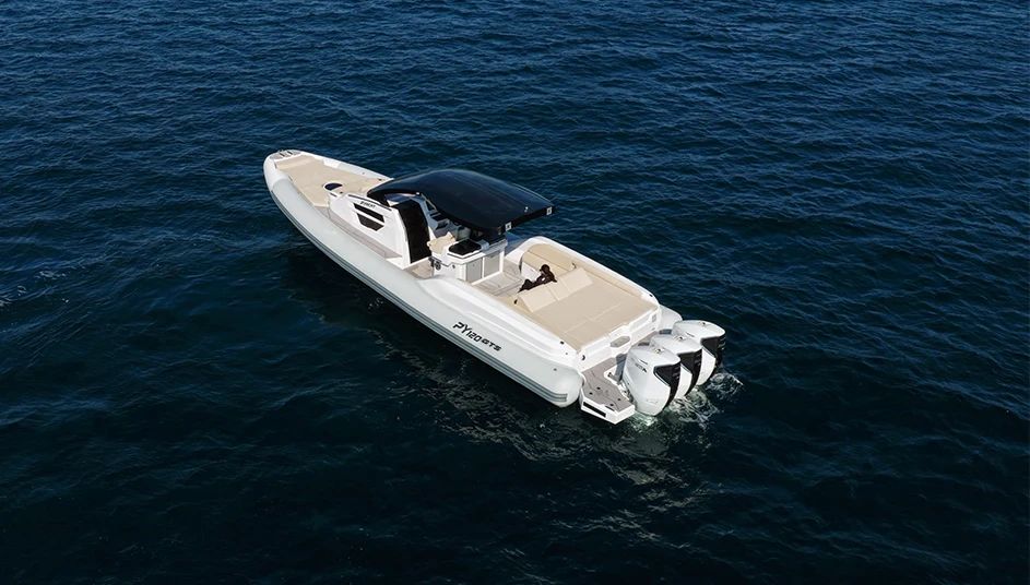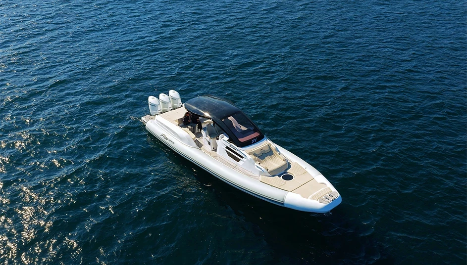 The PY120 GTS is designed for a demanding owner who seeks speed, space, prestige, and emotion at sea. A 13.80-metre maxi RIB, certified as a pleasure craft, it combines a true racing spirit, sculpted design, and uncompromising comfort.